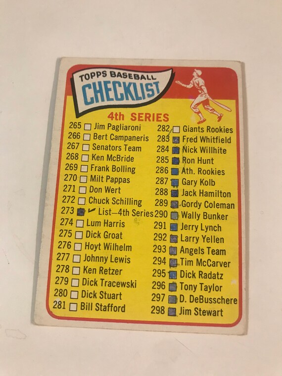 1965 Topps Baseball 4th Series Checklist 273 Etsy
